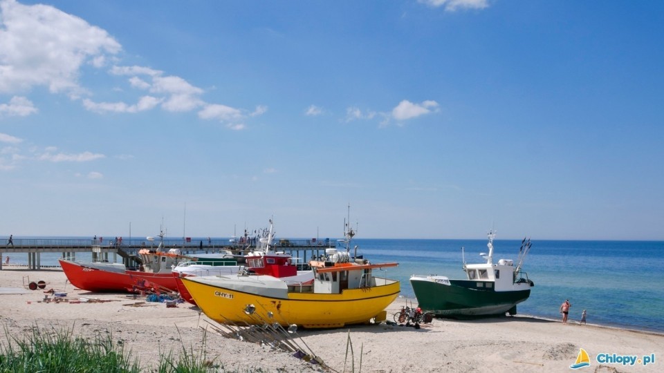 Przystań rybacka Chłopy została wybudowana niedaleko plaży, prawie w centrum miejscowości. Na plaży malowniczo i dumnie prezentują się kolorowe rybackie kutry, często oglądane przez turystów. Niedaleko przystani, w smażalniach przy plaży, można zjeść świeżą, smażoną lub wędzoną rybę.